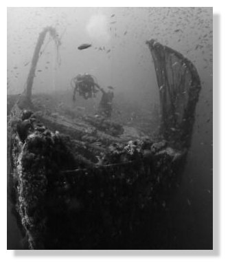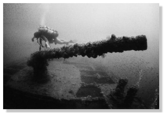 Le site est profond, l'eau pas toujours très claire, les poissons souvent rares. Le navire vous apparaît comme une masse sombre imposante.