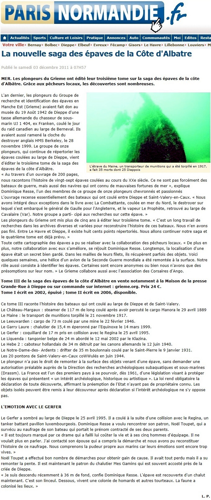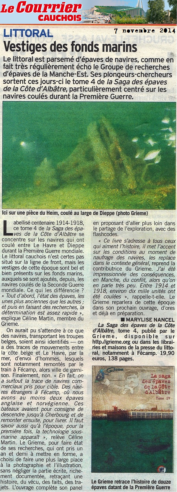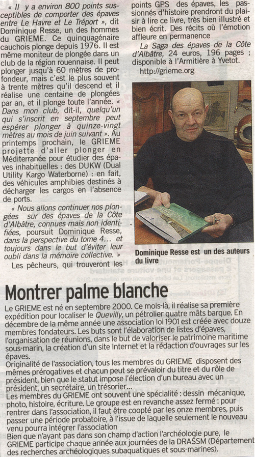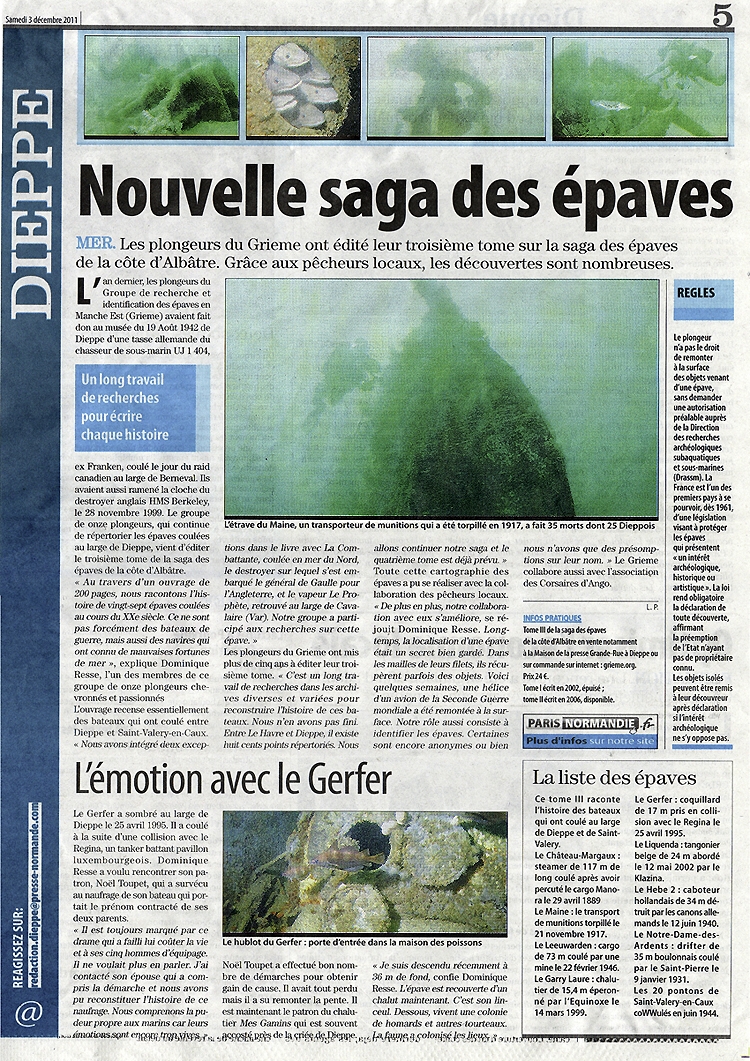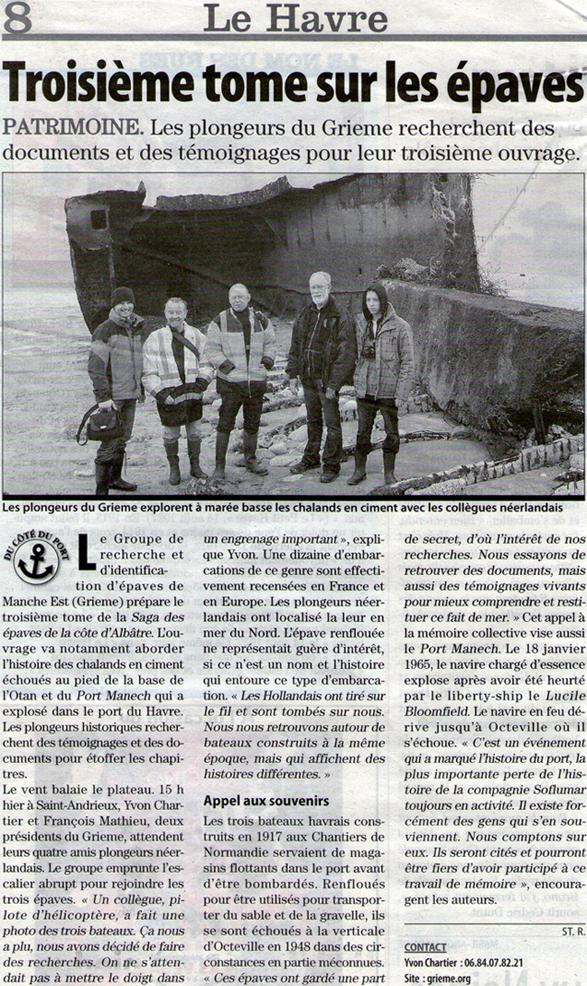 LE JOURNAL DE BORD de DIEPPE LE COURRIER CAUCHOIS LA RENAISSANCE DU BESSIN (Presse Régionale Basse-Normandie) LE COURRIER DE CONCARNEAU |