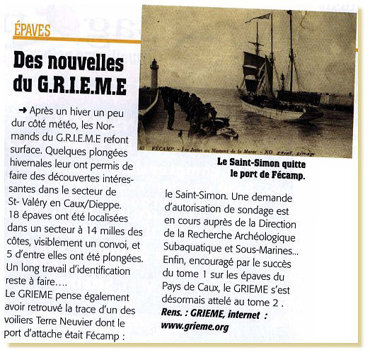 L'histoire d'un terre-neuva de Fécamp COLS BLEUS (Presse marine nationale française) N°Avril-mai /N°28 Octobre/novembre 2000 |