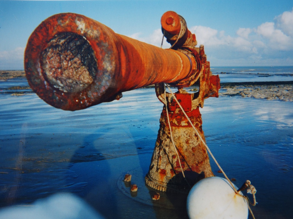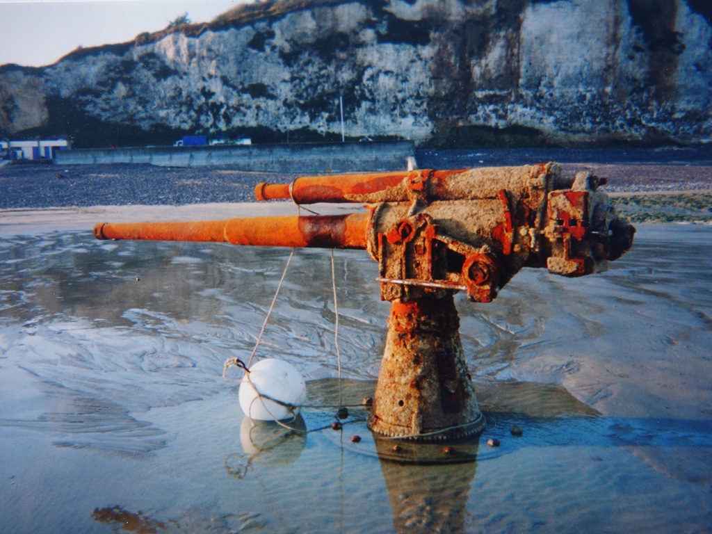Canon de 100 mm ramené sur la plage par les plongeurs démineurs de la Marine Nationale en 1995.