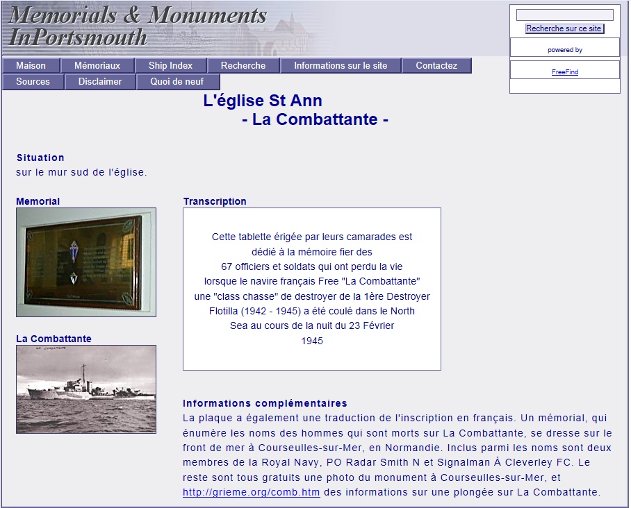 Le GRIEME souhaite rendre un hommage à ce bâtiment et à son équipage (en gros 300 hommes en firent partie) en racontant leur histoire. Ce sera notre manière de rendre à LA COMBATTANTE une juste place dans la mémoire des hommes libres. Demain, les marins de LA COMBATTANTE disparaîtront.