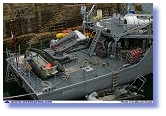 Deux lignes de mouillage classiques occupent cette petite plage, encombrée par un affût double de 102 mm entouré et protégé par un pavois de presque un mètre de haut en acier spécial.