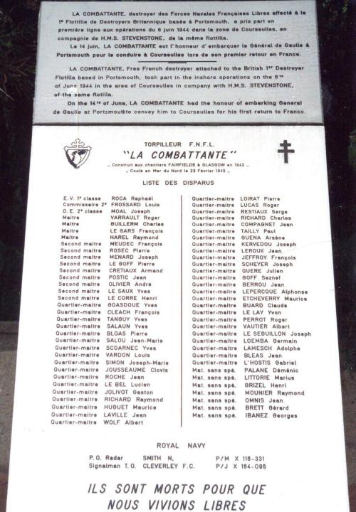 Au delà de la description technique de La Combattante, il n'en demeure pas moins que l'essentiel reste les hommes qui servirent ce navire mythique des FNFL, rassemblés autour du Général De Gaulle.