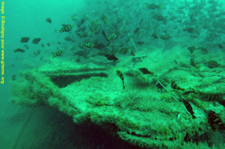 La visibilité souvent bonne dans cette zone me permit de découvrir l’épave dans son intégralité un beau jour d’août 2002.