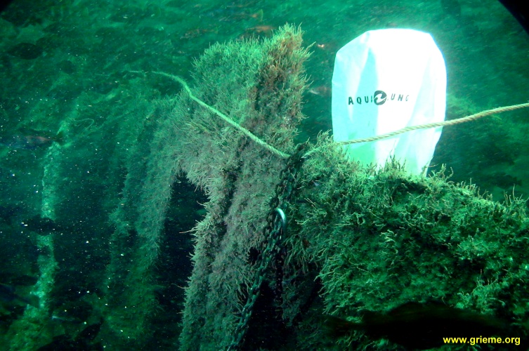 Facile à trouver au sondeur, la partie arrière remontant de 5/6 m encore en 2005, nous accrochons assez facilement l’épave pour avoir une ligne de vie avec la surface. L’épave gît entre 30 et 36 mètres en fonction des coefficients de marée et ne présente aucune difficulté particulière à l’exploration.