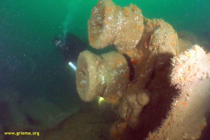 Le tour complet du gisement se fait sans problème, l’épave ayant gardé son intégralité malgré les différents impacts de chalutage dont elle a été victime au fil des ans, du fait de son absence sur les cartes marines.