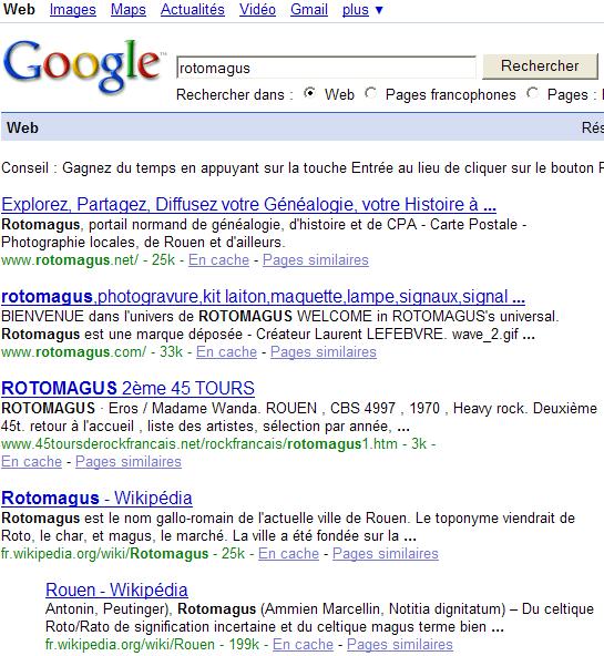 Quoiqu'il en soit la première remarque plutôt "singulière" que cette question déclencha c'est le lien potentiel entre ROUEN et ROTOMAGUS (le pseudo officiel du webmaster de ce site).