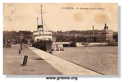 (Ci-dessus - Le ROUEN à quai à Dieppe)