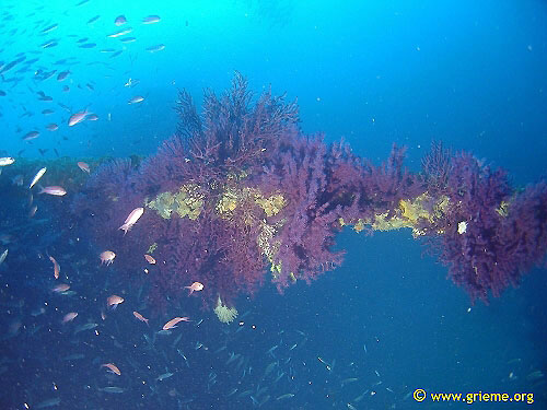Le pont supérieur a disparu presque partout et les niveaux inférieurs sont accessibles couverts d’un bric à brac de vestiges divers où les bouteilles sont nombreuses. L’épave repose sur un fond de sable grossier, plat, parfois creusé par les courants. La faune y est des plus dense et variée, allant des rougets aux sars en passant par les dorades et une multitudes de poissons plus petits qui vous accompagnent tout au long de la plongée. Une plongée ne suffira pas pour tout voir, il faudra revenir…