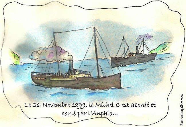 Le lendemain, le Directeur de la Compagnie, Axel Busck, vient s’enquérir des circonstances du sinistre. Le Michel C repose pour toujours au pied du Grand Ribaud, et on renonce à son renflouement. L’Amphion, réparé grossièrement à Toulon, regagne Marseille. Il aura encore une longue carrière : construit en 1867, soit à peu près en même temps que le Michel C, il sera revendu à la Compagnie Sicard en 1907, puis à la Compagnie Tacchéla en 1917, à 50 ans !