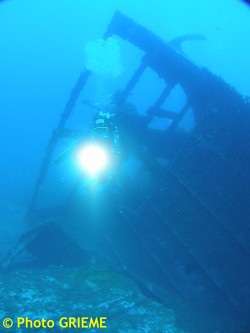 Non loin du Michel C, repose leVille de Grasse dont il ne reste plus grand chose si ce n'est que "le squelette" des roues à aube et quelques pièces ici et la.... impressionnant malgré tout et surtout provoque une ambiance toute particulière. Un must pour les photographes. Si votre niveau vous le permet, si les conditions météo sont bonnes, si le courant n'est pas trop présent, si la structure qui vous accueille est d'accord.... si et seulement si toutes ces conditions sont réunies et que vous sentez le truc... nous vous conseillons de faire dans la même plongée le Ville de Grasse et le Michel C. Attention néanmoins à la consommation et aux paliers..... mais l'expérience vaut d'être tentée.
