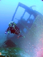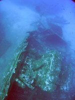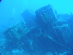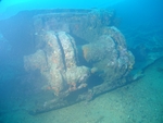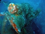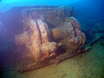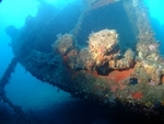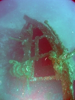 Tout à l'arrière du navire gît le secteur de barre qui est très caractéristique de ce genre de navire, superbe à voir.