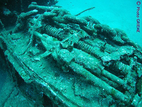 rajoutés dans lesquels les mines étaient glissées.Récit et photos sous-marines (couleurs ci-dessus) : Dominique RESSE Stage épaves à Giens avec le GRIEME - Juin 2007